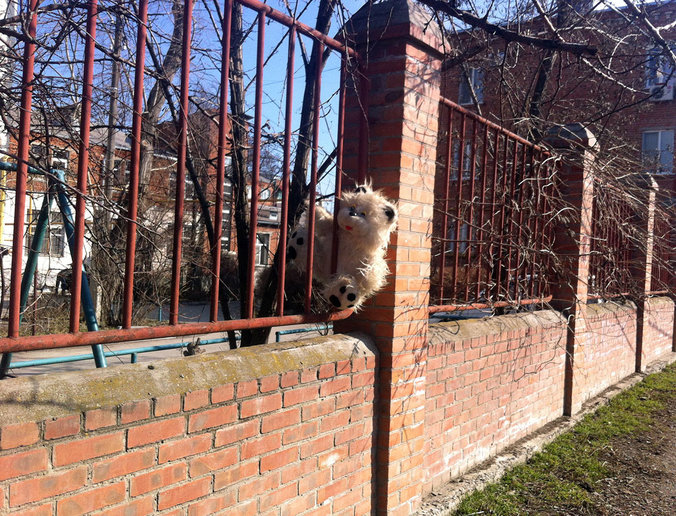 Медведь плюшевый заборный